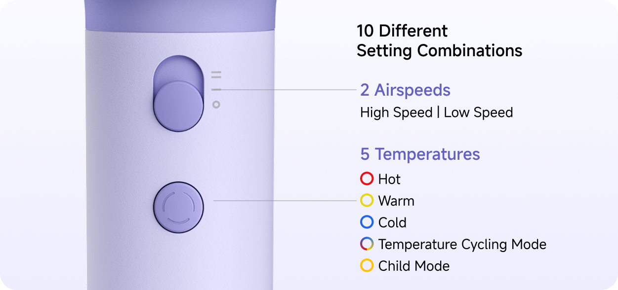 Функция переключения температуры: попеременная подача горячего и холодного воздуха, чтобы избежать длительного теплового воздействия и защитить волосы, не увеличивая время сушки.